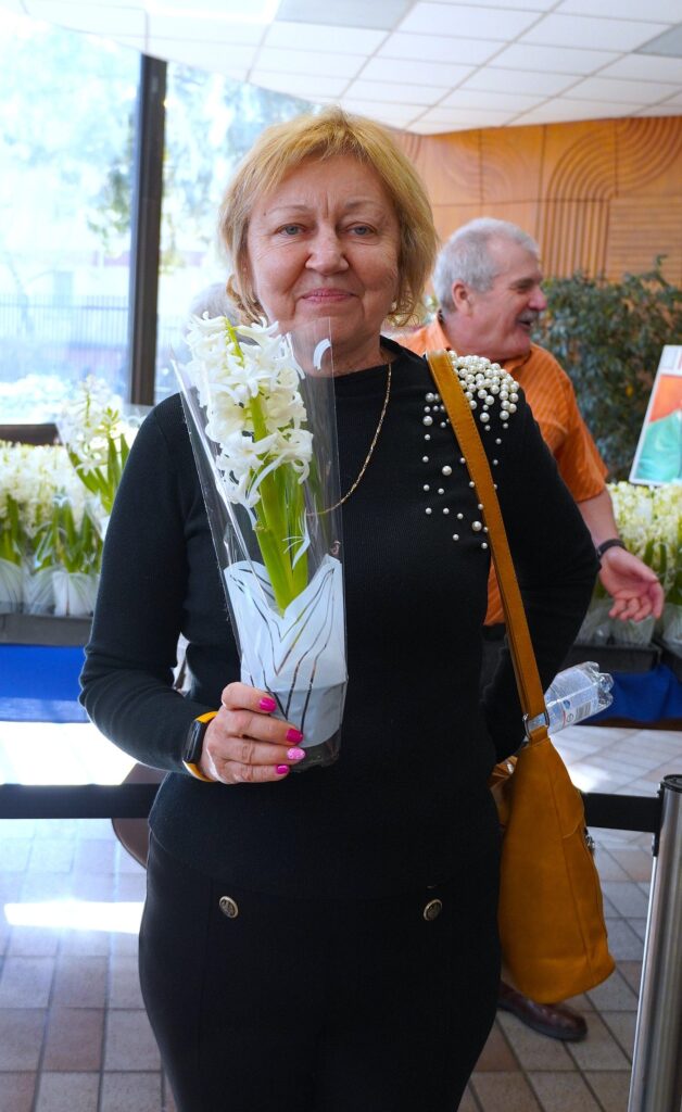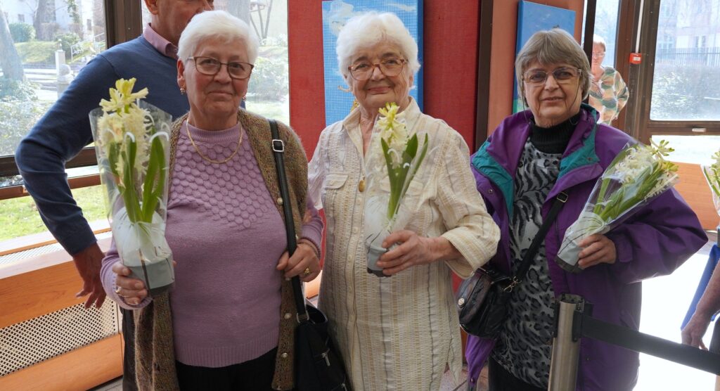 Kedves gesztusként a műsort megtekintő összes női résztvevőnek egy-egy cserép jácint virágot adtak át szorgos férfikezek az előadás után, a színházterem előterében, amiket ők örömmel fogadtak. Valamennyien türelemmel várták ki mire az igencsak hosszú sorban haladva kezükbe került a BPNYKLUB férfi tagjai köszönetének virága.