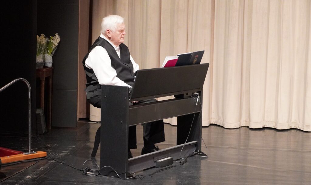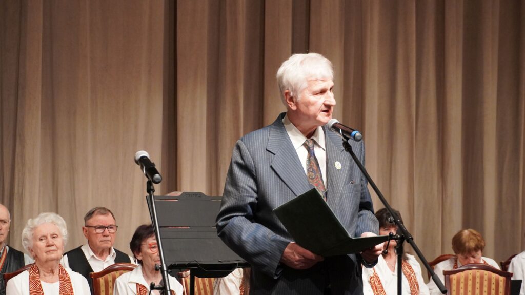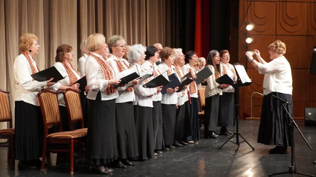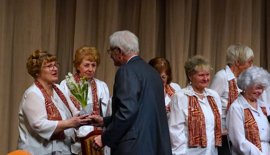 Köszöntő szavai után – ünnepeink sorában első alkalommal fellépve – gödöllői tagozatunk Szurdok György kórusa ünnepi dalműsorral tette még emelkedettebé a hangulatot. Népdalfeldolgozásokat, virágénekeket adtak elő nagy átéléssel, miközben Ráthy József kísérte őket elektromos zongorán. Kiss Zsuzsanna és Kálmán István, a kórus énekesei szólóban is felléptek. Végezetül – tekintettel közelgő nemzeti ünnepünkre – az 1848-as forradalom és szabadságharchoz kapcsolódó dalokat adott elő a kórus, kiemelkedő közöségsikerrel. Klubelnökünk tréfás noszogatására nem maradhatott el egy ráadás szám felhangzása sem, lezárásként pedig mindezekért egy-egy cserép virággal köszöntötte tábornok úr a kórus hölgy tagjait.