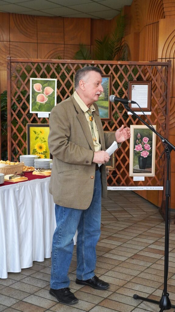 Ezt követően klubunk elnöke, dr. Keszthelyi Gyula tábornok úr köszöntötte a kiállítókat és a paravánokon látható alkotások iránt érdeklődő, megjelent közönséget. Ez a kiállítás minden évben egy ünnepélyes alkalom arra, – mondta – hogy megálljunk egy pillanatra, és elgondolkodjunk az élet, a tapasztalat, és a művészet összefonódásán… A kiállítók életkora 62 és 91 év között van, de az életkor nem csupán egy szám, hanem egy életút, amely a tapasztalat és a bölcsesség kincseit hordozza magában… A kiállítók lehetőséget kaptak arra, hogy tudásukkal elvarázsolják a művészetkedvelő közönséget… A tárlat hiteles és értékes beszéd a múltról, a jelenről, és a jövőről.